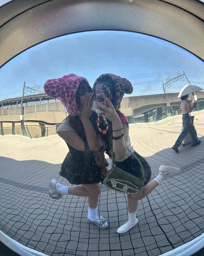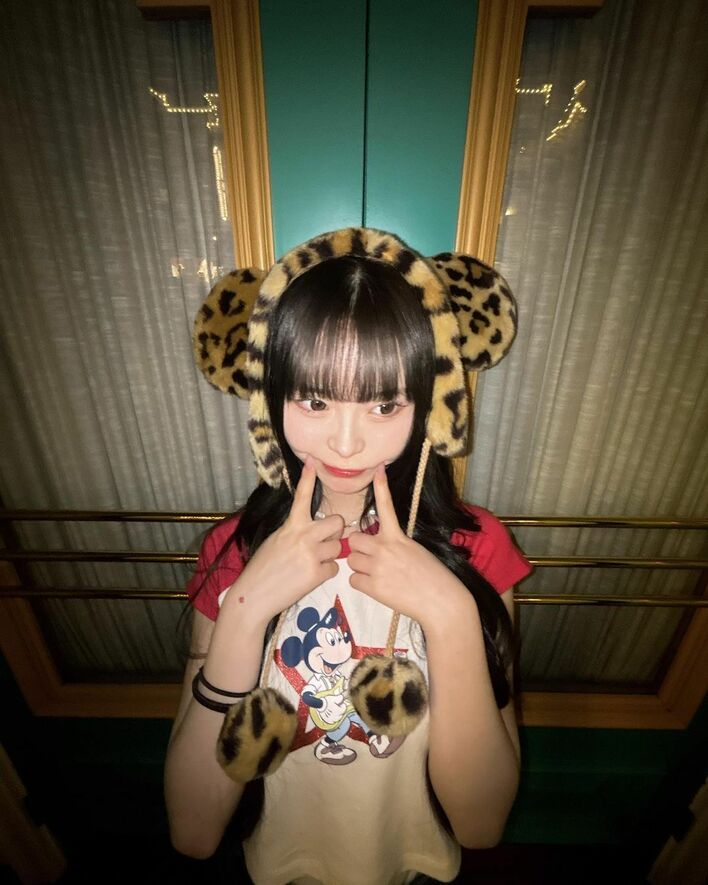現役JKおさき&さくら 色違いTシャツとヒョウ柄キャップのおそろいコーデでディズニーデート「ギャルディズニーしてきまちた」