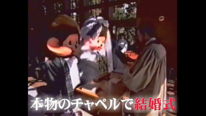本物のチャペルで結婚式を挙げたモンチッチくんとモンチッチちゃん