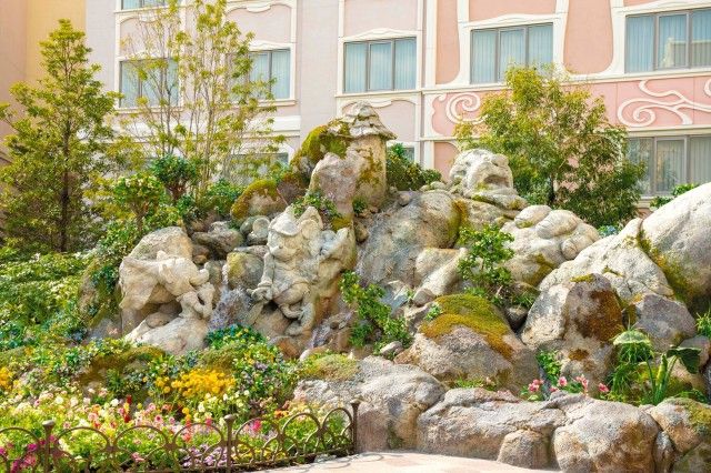 東京ディズニーシー・ファンタジースプリングスホテル メインエントランス(キャラクターなどをかたどった岩の彫刻)
