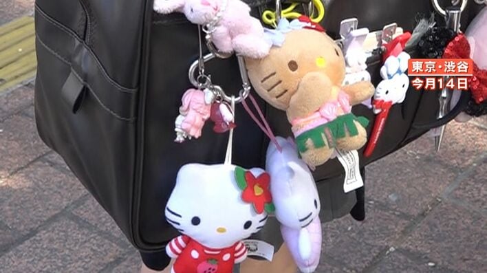 東京・渋谷の女子高校生のカバンにはたくさんのキティグッズが