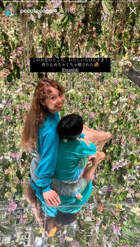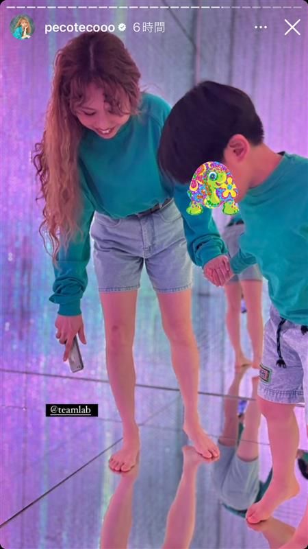 若槻千夏とpeco背中合わせ幻想的なショットを公開!2家族で豊洲のチームラボ pecoの息子との2ショットも
