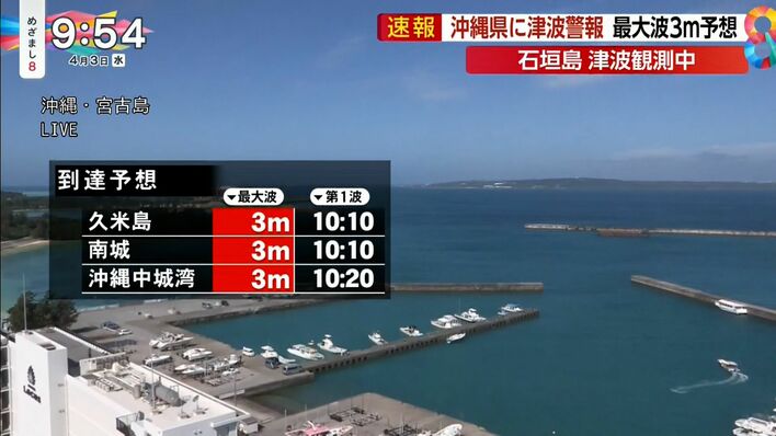 【速報】沖縄本島・宮古島・八重山地方に津波警報 与那国島で30cm観測