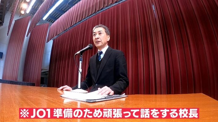 (志賀中学校・徳楽仁校長と登場方法を相談するJO1)