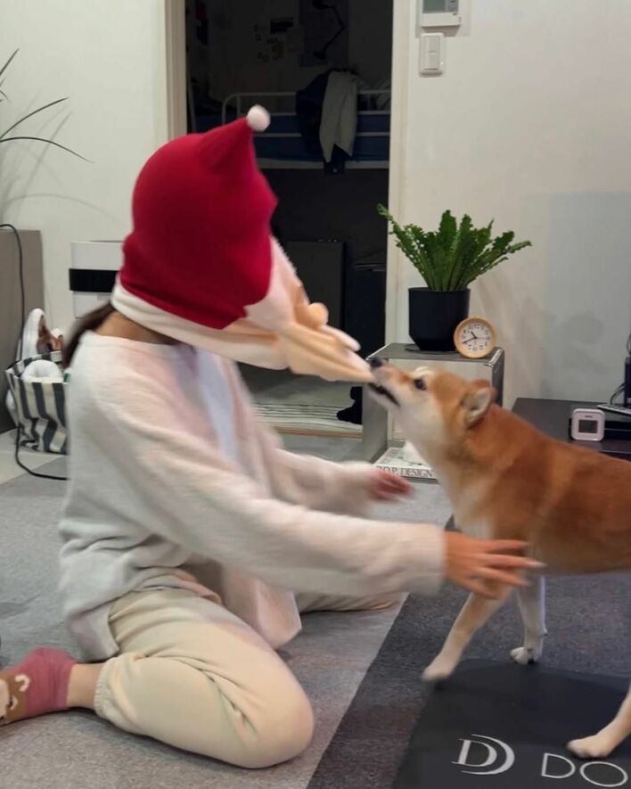 不審なサンタは絶対に許さないワン! 柴犬に引っ張られすぎて崩壊したサンタの顔に思わず爆笑する人続出【激かわアニマル奇跡の瞬間】