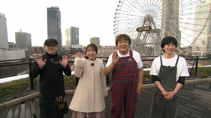 ↑左から)『開華楼 横浜大世界店』飯田武さん・フジテレビ 藤本万梨乃アナウンサー・石塚英彦さん・『まちノ食堂』府川和也さん