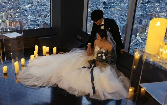「ドレス姿涙出る」ふくらP&元乃木坂・高山一実 絶景ウェディング初公開!デコルテ見せドレスやタキシード姿で見つめ合うショットも披露