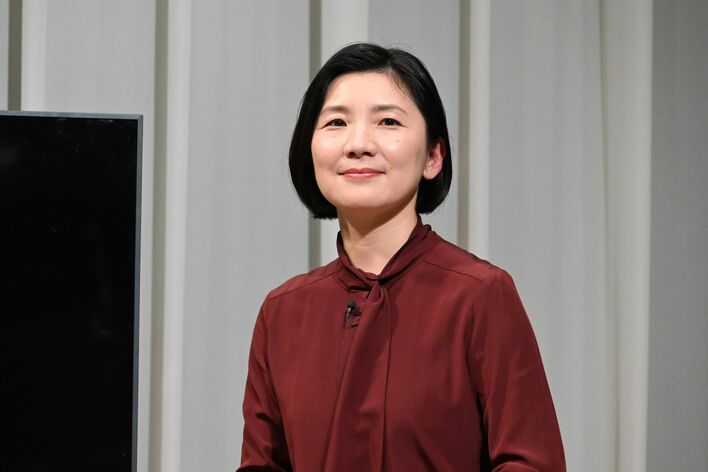 左から)新美有加アナウンサー、福本莉子、平藤喜久子教授