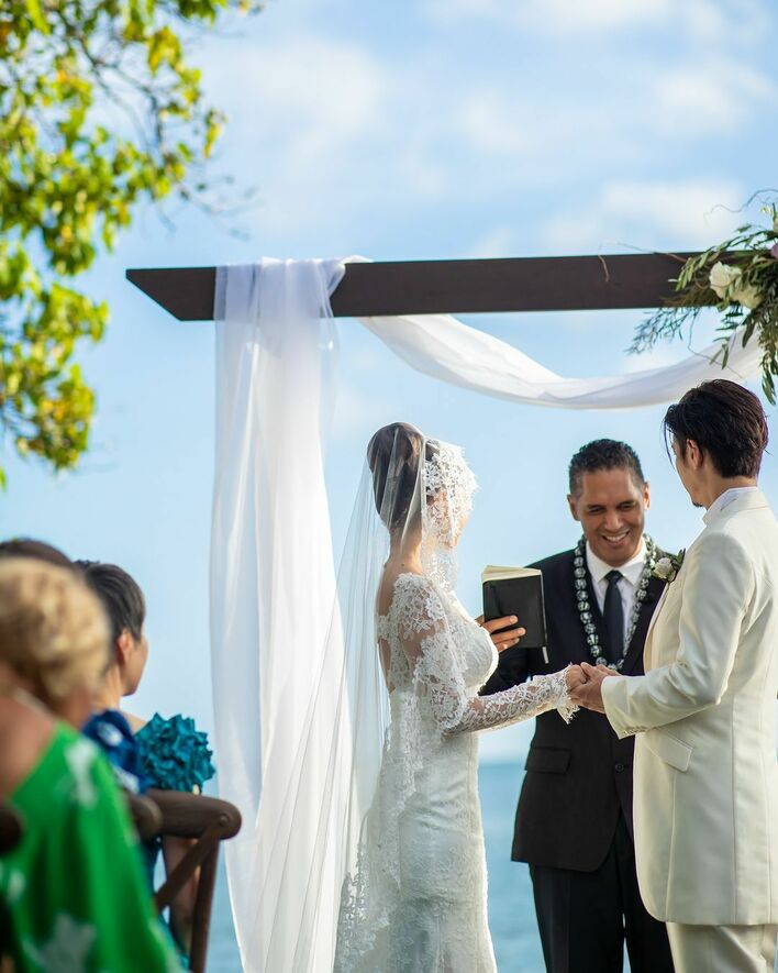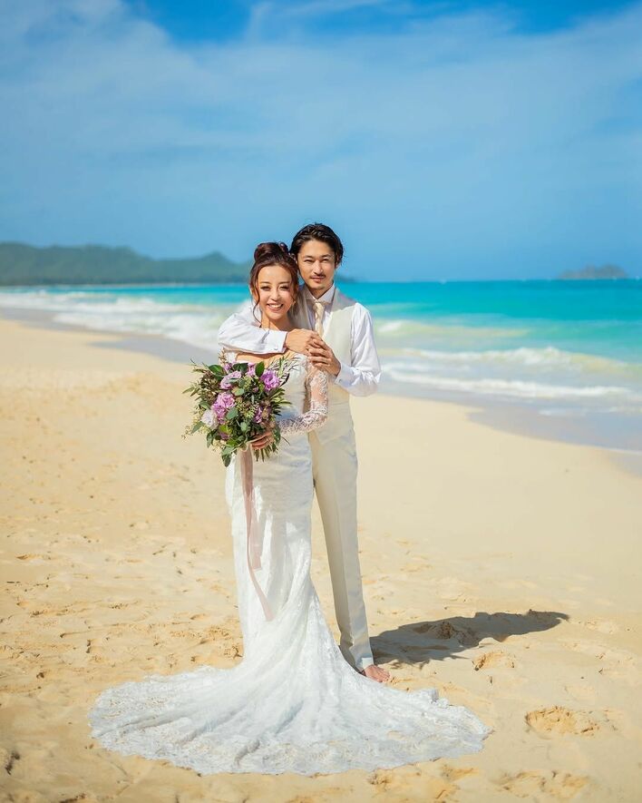 「素敵なご夫婦」窪塚洋介・妻 ハワイでのウェディングドレス姿を披露!仲良しバックハグ写真も公開